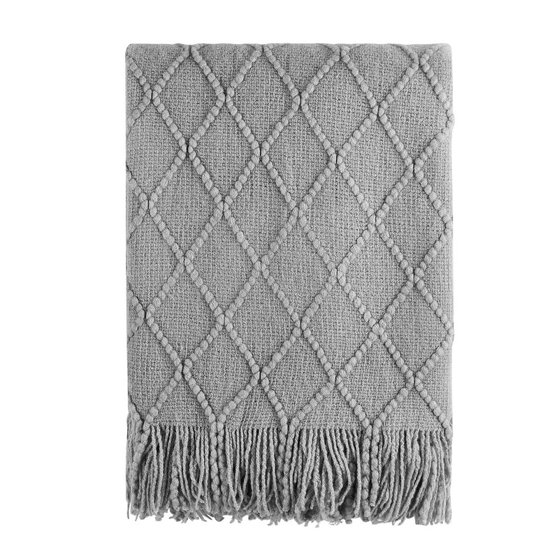 BOURINA Throw Blanket Textured Solid Soft Sofa Couch Cover Decorative Knitted Blanket (Light Grey, 50x60 inches)