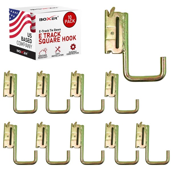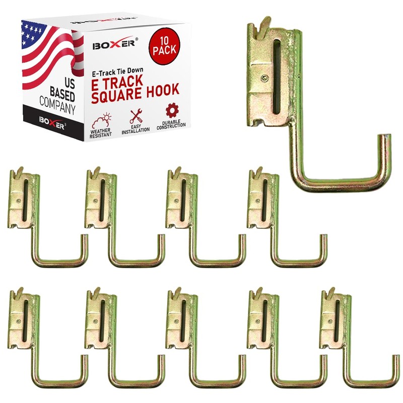Boxer Tool Square Hook for E Track Systems 10 Pack, Square Hook Tie Down Accessories for Trucks, Trailers, Vans. E Track Fitting Accessory