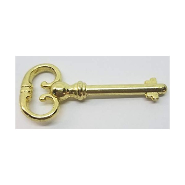Brass Plated Key for Roll Top Desk Lock - Polished Skeleton Antique