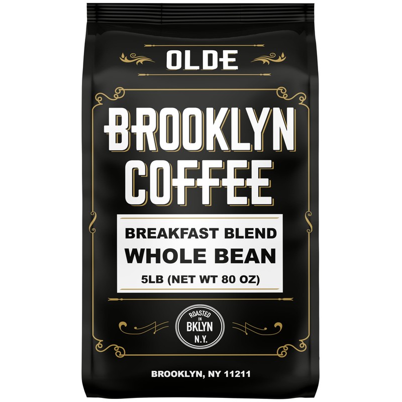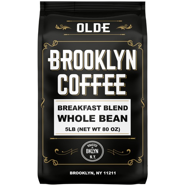 BROOKLYN COFFEE Whole Bean, Breakfast Blend Light Medium Roast (5lb) Delicate, Smooth, Low Acidity - Fresh Bulk Coffee Beans Roasted Weekly in NYC