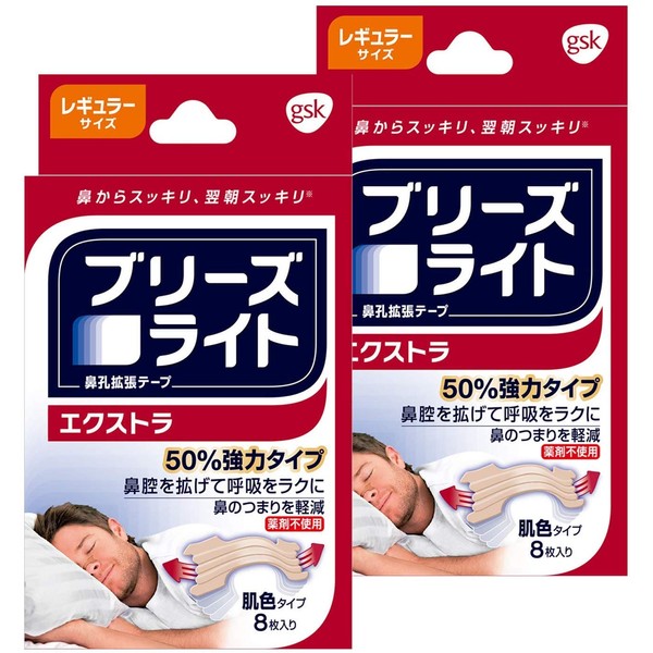Breeze Light Extra Skin Tone Regular Nose Loading Tape for Better Sleep and Snoring Reduction, 8 Sheets x 2 Pack