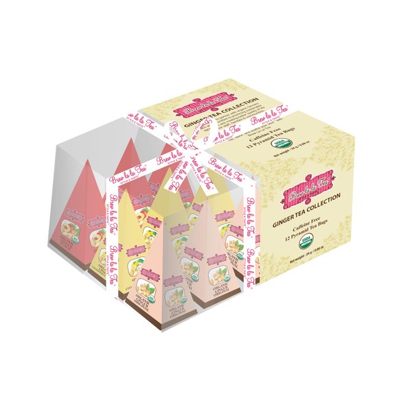 Brew La La Ginger Tea Collection-12 Pyramid Tea Bag Sampler-USDA Certified Organic