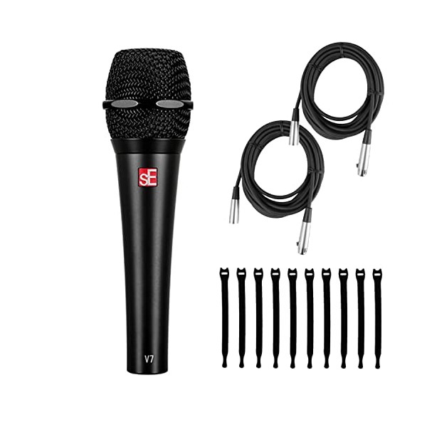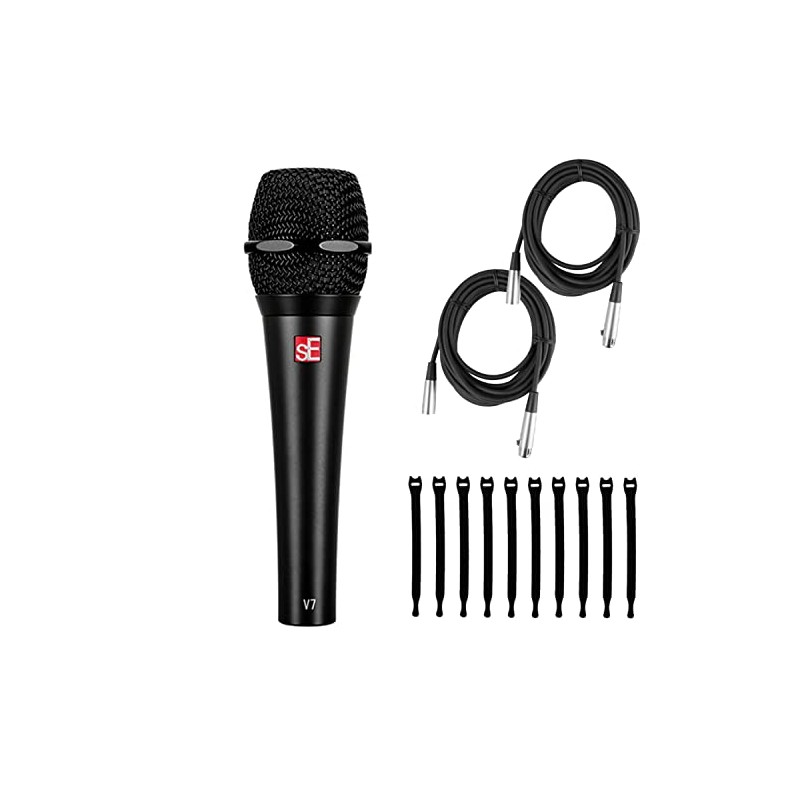 Briskdrop sE Electronics V7 Black Dynamic Supercardioid Handheld Microphone, Black - Bundle with 2 XLR Cables and 10 Cable Ties