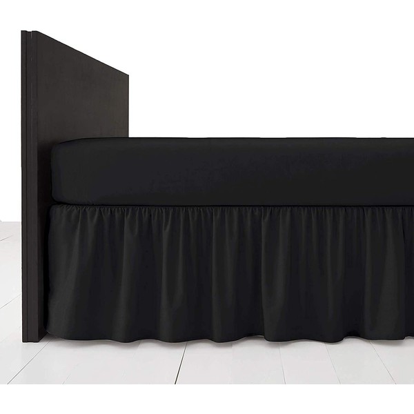 - British Home Bedding - Plain Polycotton Extra Deep Frilled Bed Base Valance Sheet (Black, Double)