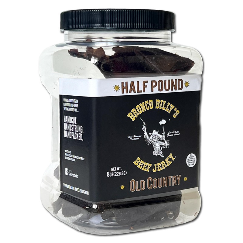 Bronco Billy's Beef Jerky Old Country Hickory Smoked Half Pound Jar - 8oz - New Jar Design