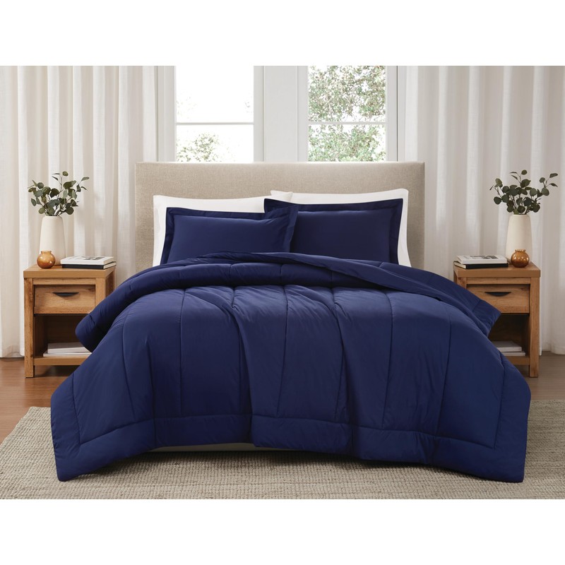 Brooklyn Loom Solid Cotton Percale Navy Twin/Twin XL 2 Piece Comforter Set, Solid Color Themed, Oeko-TEX Certified Confidence