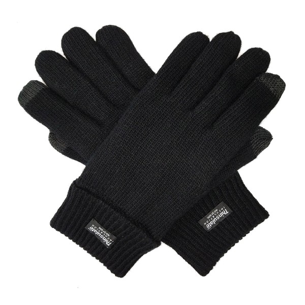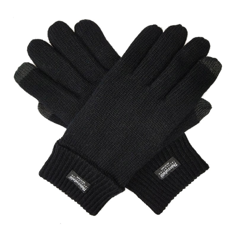 BRUCERIVER Men Pure Wool Knitted Gloves with Thinsulate Lining Size S/M (Black Touchscreen)