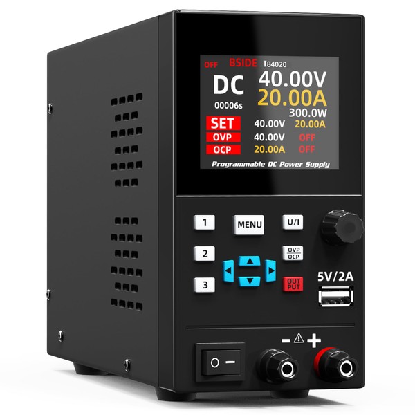 BSIDE 40V/20A Programmable DC Power Supply Variable Bench Power Supply, Encoder Knob with Memory Storage, Adjustable Switching Regulated Lab Power Supply, 4-Digits LED Display with Output Button