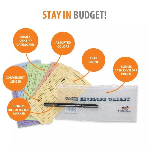 • FREE CASH ENVELOPE WALLET- Budgetizer cash envelope bundle includes a Free pouch. This bonus cash envelope wallet allows you to keep extra things when carrying your money and is ideal for cash envelopes, money envelopes, coin envelopes or budget envelopes.