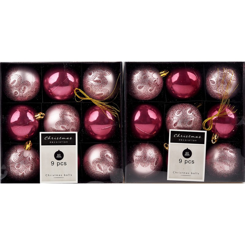 BWG 18 Christmas Tree baubles Decorations - Glitter Peacock Print - Pink Shades