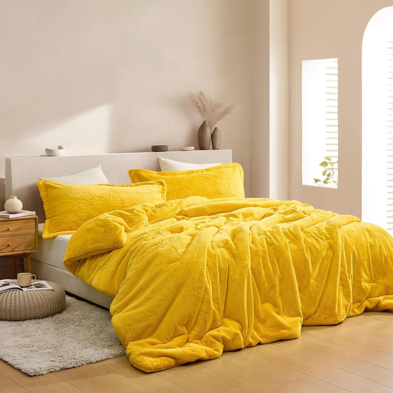 Fall in love with your bedding when you add this plush comforter set to your bedroom essentials! Made with a short and silky plush for a touch of next level softness and a thick 500GSM inner fill, the Love Thick Coma Inducer is an ultra cozy addition to your bedding set. The thickness of this cozy oversized comforter makes it perfectly squishable and the best cuddle companion when it's time for bed.