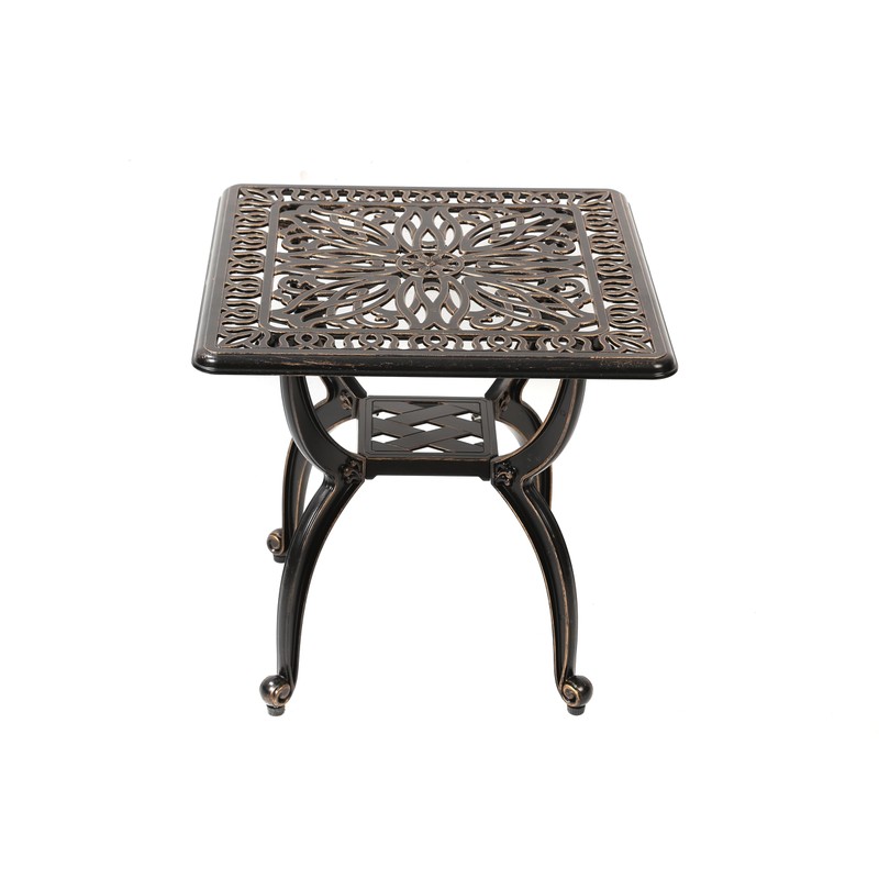 C/G Cast Aluminum Side Table,Decorative Outdoor End Table, Ornate Floral Pattern (Square, Copper)