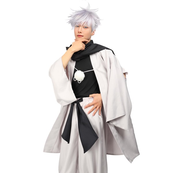 C-ZOFEK Satoru Cosplay Haori Kimono Jacket with Scarf for Men, White, Large