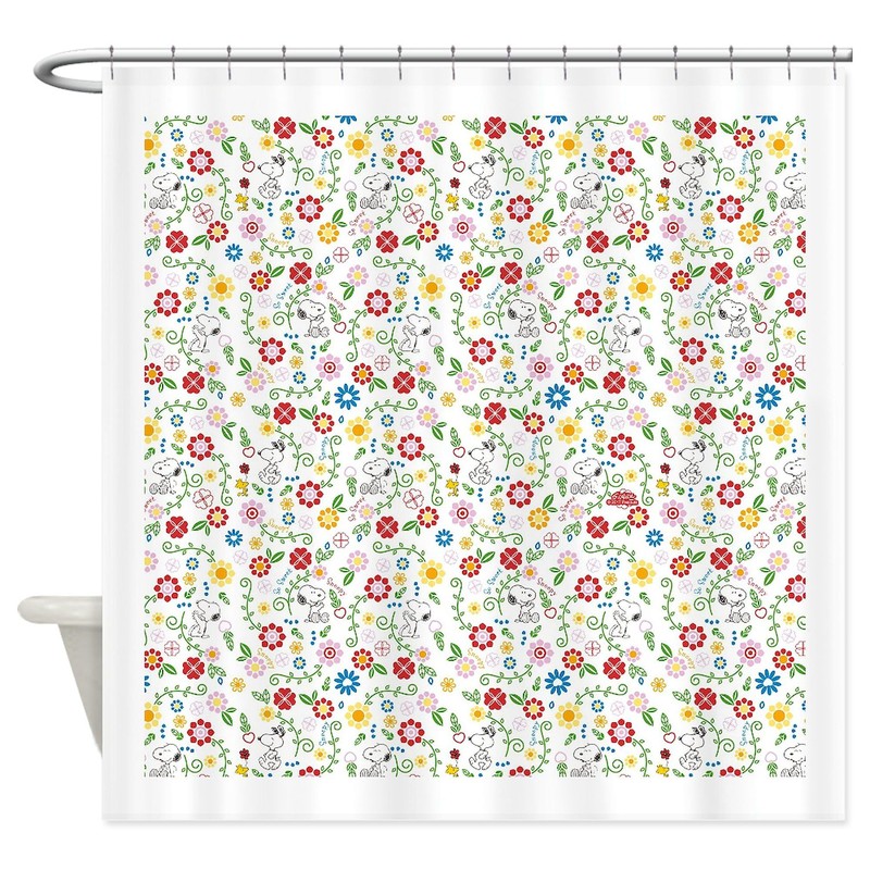 CafePress Peanuts Snoopy Spring Pattern Decorative Fabric Shower Curtain