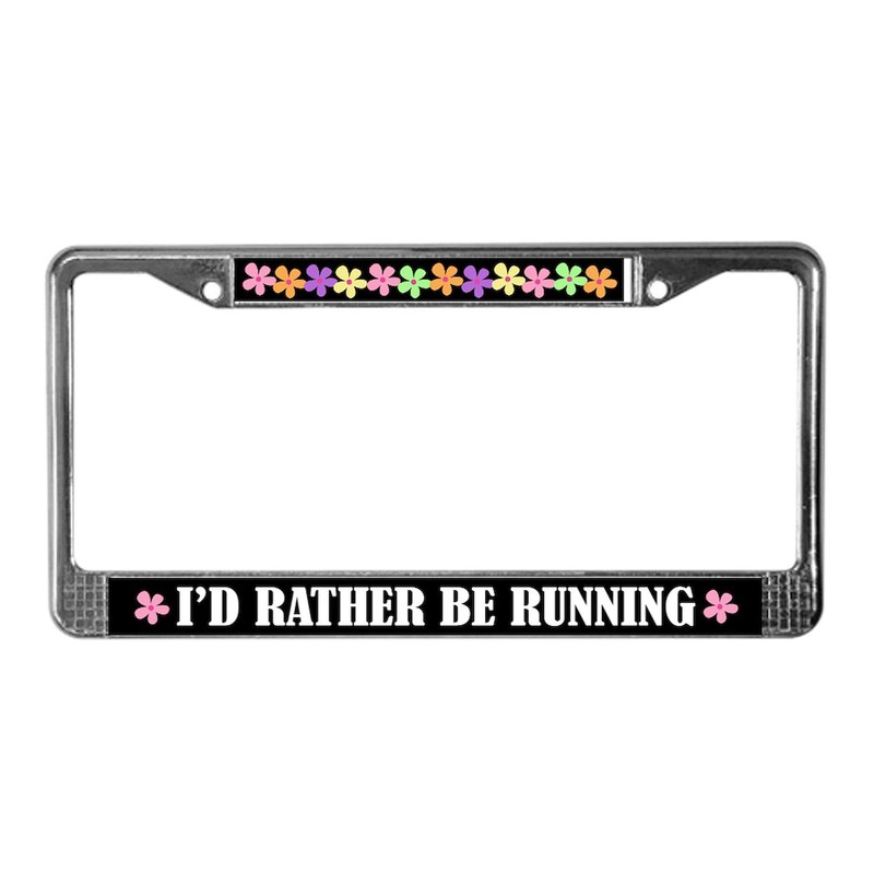 CafePress Rather Be Running License Plate Frame Chrome License Plate Frame, License Tag Holder