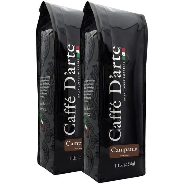 Caffe D'arte Campania Whole Bean Coffee, 1 Pound, Pack of 2