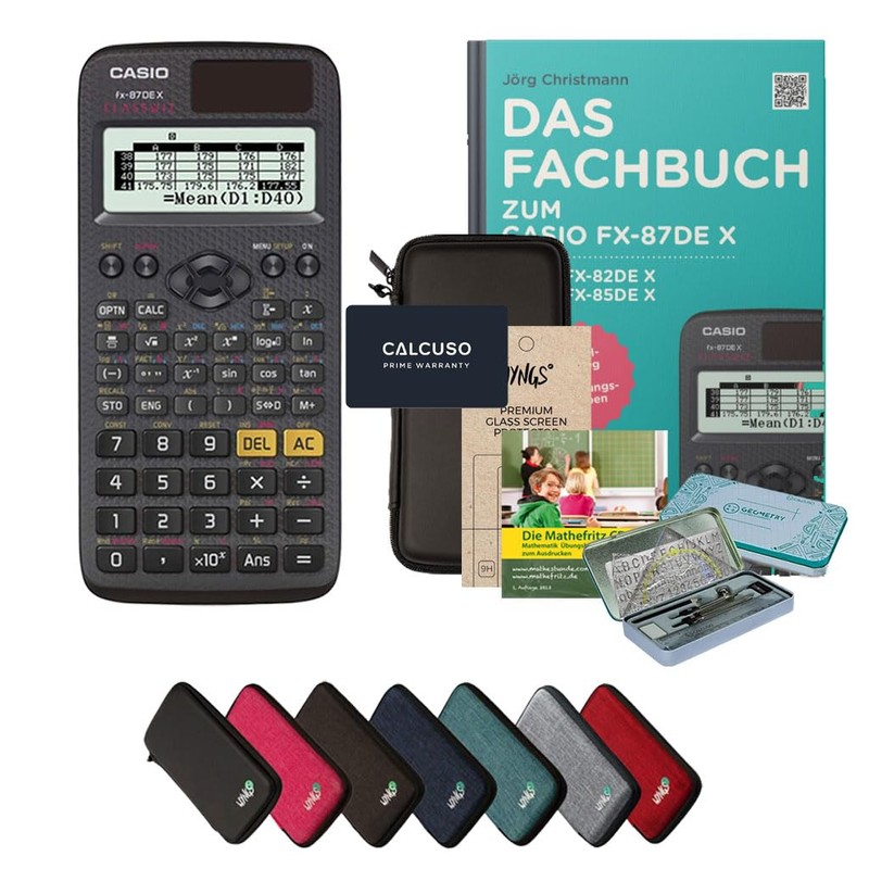 • Bundleinhalt: Casio FX-87DE X, WYNGS protective case, reference book for Casio FX-87DE X, Mathefritz learning CD, premium geometry set, WYNGS screen protector