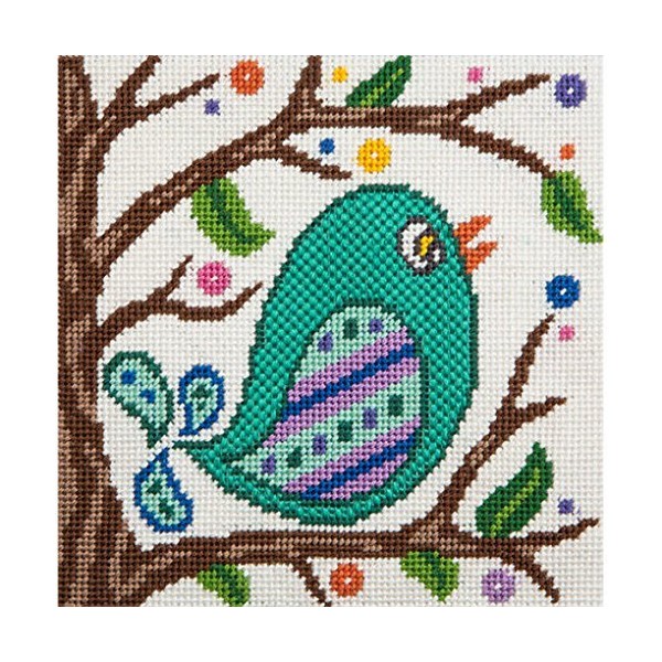 - Kit contains: 100% cotton #14 mesh canvas with design printed in color, embroidery floss, needle & instructions