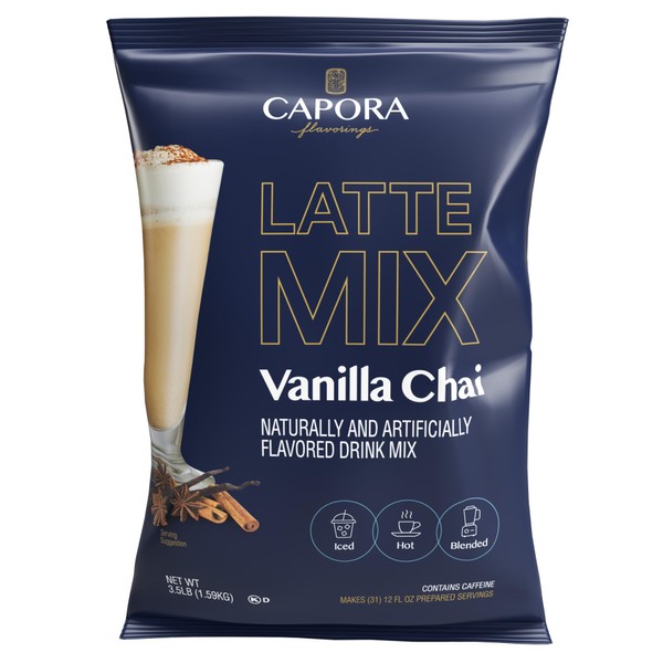 - Hot Vanilla Chai Latte (12 oz. yield), 1/3 cup Capora Vanilla Chai Latte Mix, 10 fl. oz. hot water, milk, or dairy alternative, Combine frappe mix and your liquid of choice in a serving cup and stir to combine.
