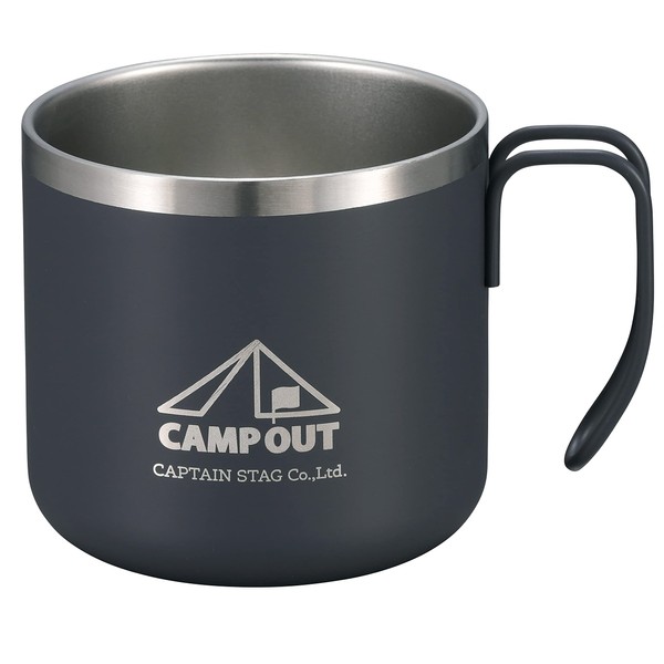 キャプテンスタッグ(CAPTAIN STAG) アウトドア コップ マグカップ マグ カップ タンブラー ダブルステンレス 真空断熱 保温 保冷 350ml ダークグレー キャンプアウト UE-3571