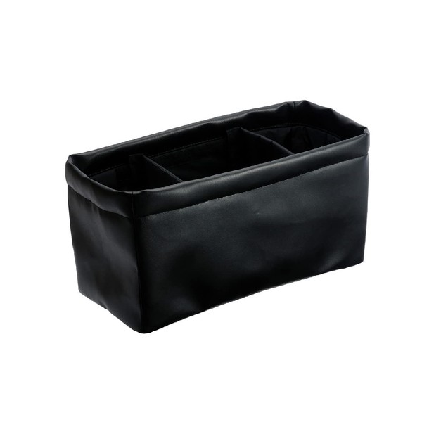 - Just the right size storage box for a walk-through between the seat and the seat. Comes with 2 separate compartments that can be changed freely so you can neatly organize sorting, bags, toys, DVDs, remotes, and small items. Genuine leather look with matching interior You can attach the dividers to your preferred position