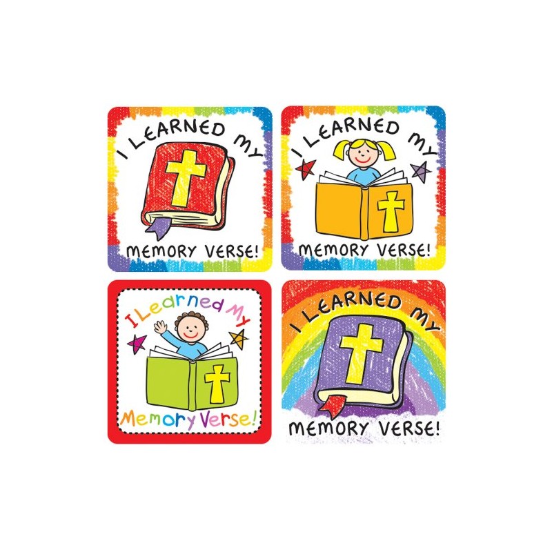 Motivate and reward students with I learned My memory verse stickers. Includes 120 stickers total, 6 sheets with 20 stickers Each. Stickers are perfect in the Sunday school room or at home, to reward students. They provide positive, inspirational reminders that are sure to brighten any students' Day. Ideal for prize boxes and craft projects, stickers and are an essential addition to any teacher's desk or treasure chest!