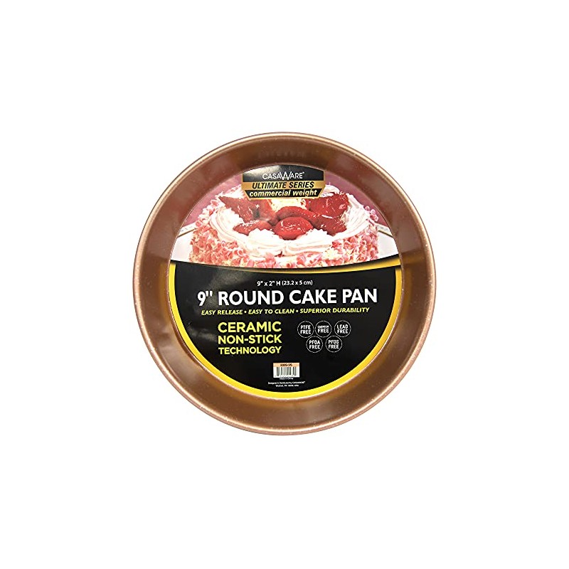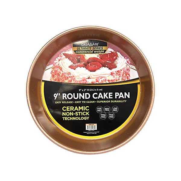 casaWare Ceramic Coated NonStick 9-Inch Round Pan, Rose Gold