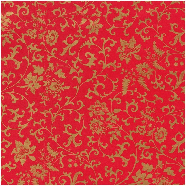 Caspari Flora Scrollwork Red & Gold Gift Wrap - 30" X 8' Roll