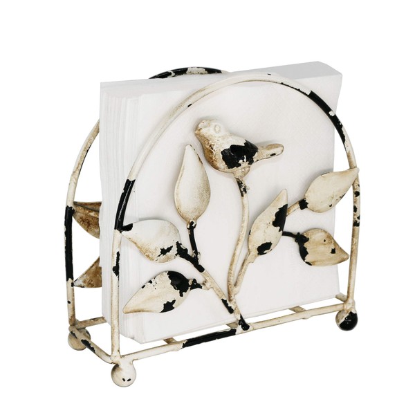 - Napkin Holder features classic cast iron bird and leafs design.