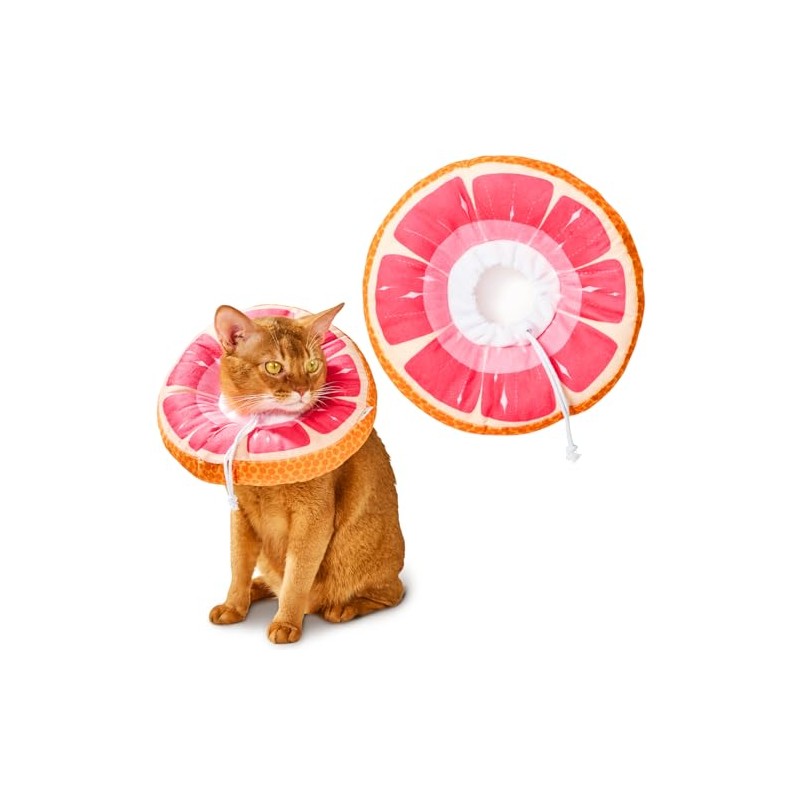 Cat Cone, Adjustable Cat Recovery Collar, Extra Soft Cat E Collar with Drawstrings, Prevent Licking and Scratching (Grapefruit, Small)