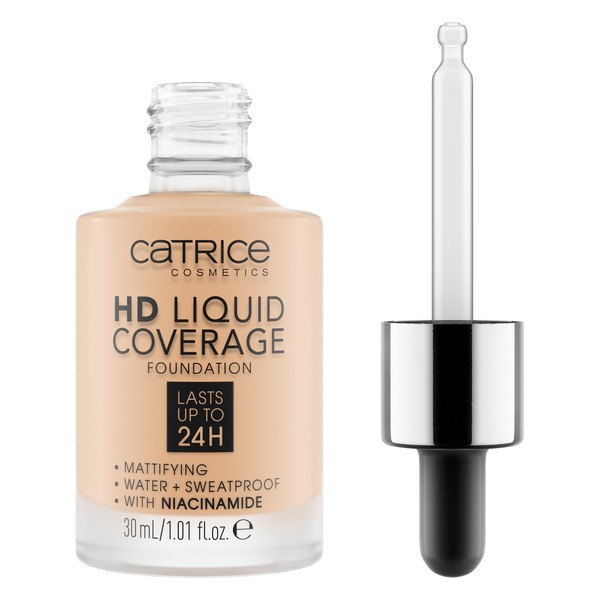 - THE COVERAGE OF YOUR DREAMS! The Catrice HD Liquid Coverage Foundation is an ultra-lightweight, high coverage, long lasting foundation for a natural looking, matte finish. Featuring a unique dropper applicator, this foundation is so lightweight it provides a second skin, airbrushed effect for up to 24 hours.