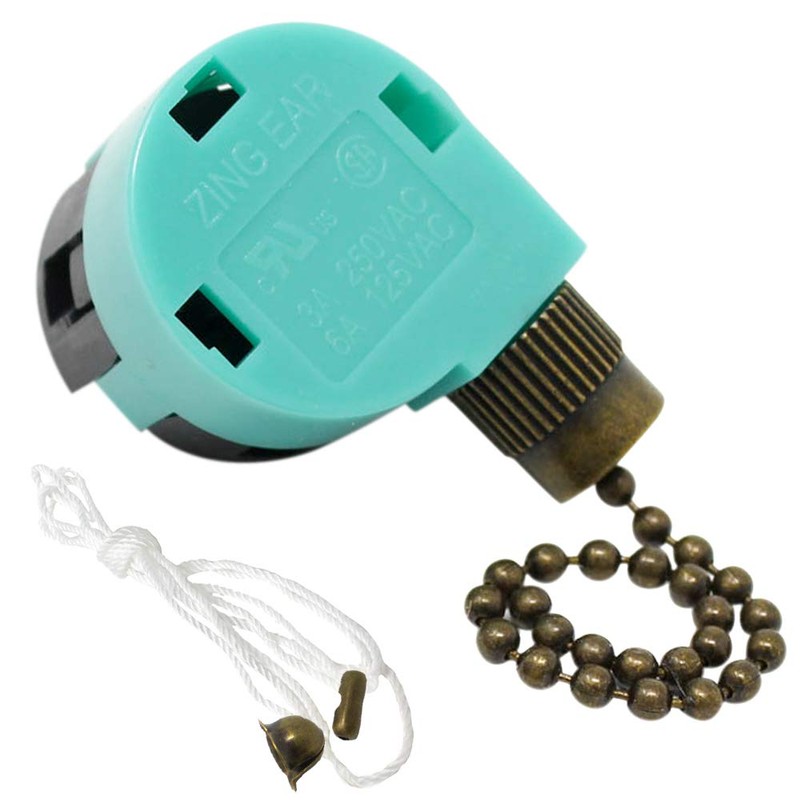 CeilingFanSwitch Zing Ear ZE-268S6 Switch 3 Speed 4 Wire Pull Chain Control Ceiling Fan Replacement Speed Control Switch (Antique Brass)