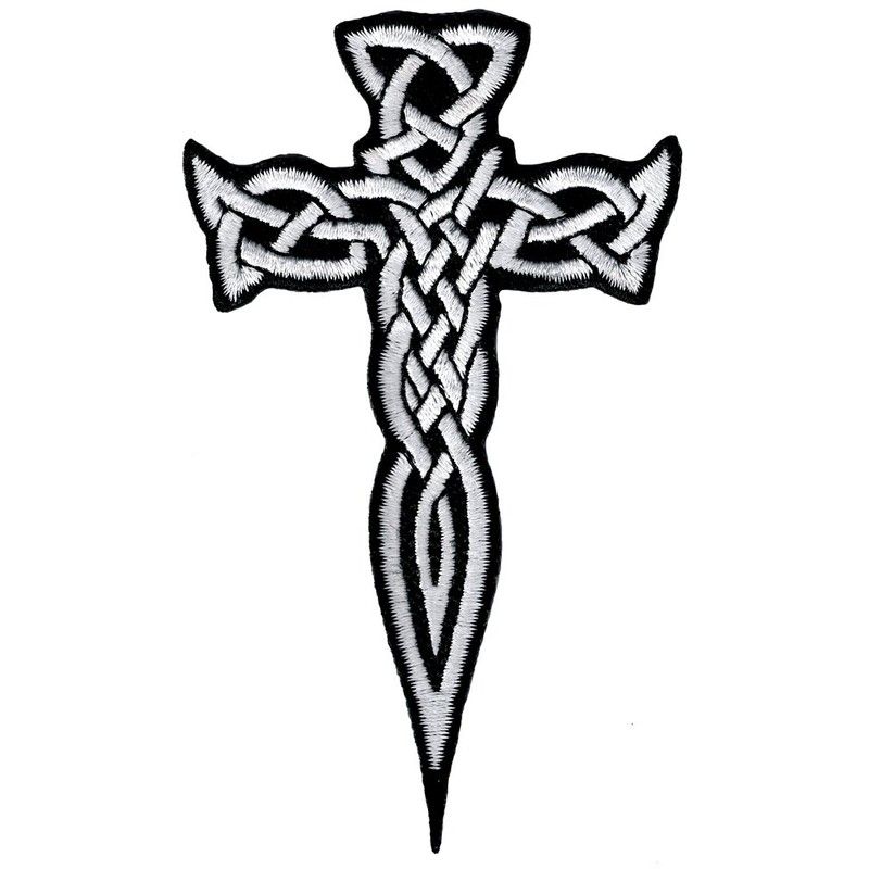 Celtic Cross Dagger White Iron-On Patch Embroidered Irish Crucifix