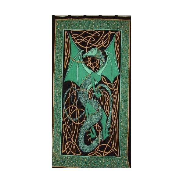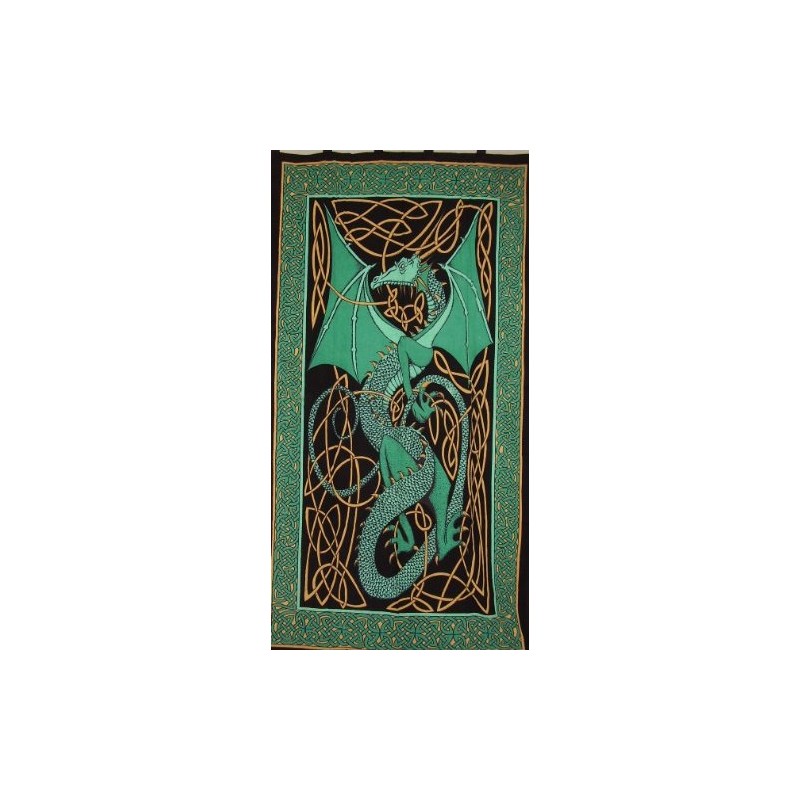 Celtic Dragon Tab Top Curtain-Drape-Door Panel-Green