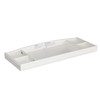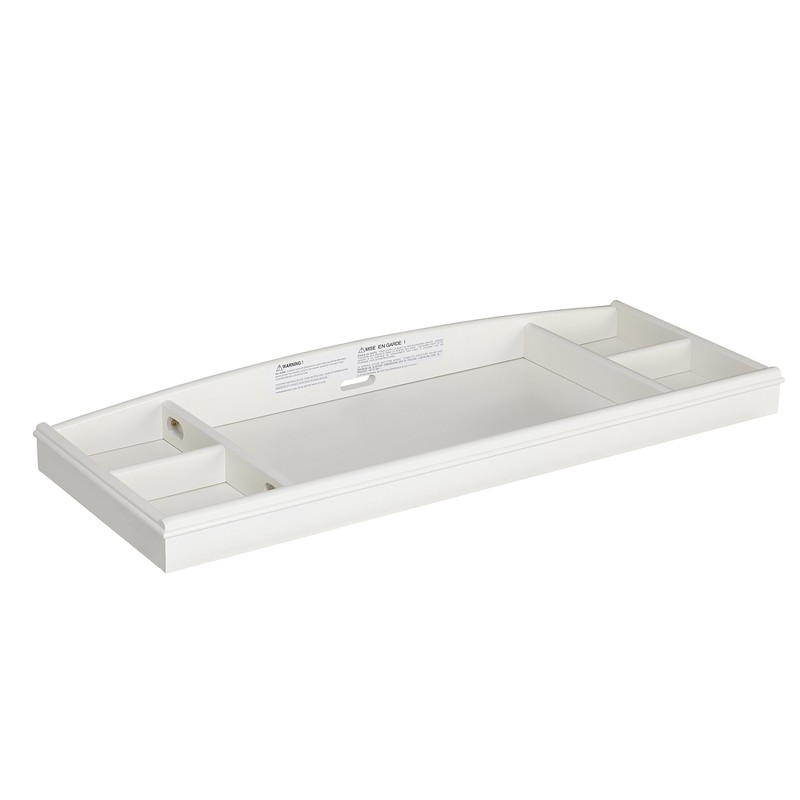 This changing station sits atop the Medford double dresser and fits most changing pads. Storage is key, with two side compartments that can hold all necessary baby supplies and products.