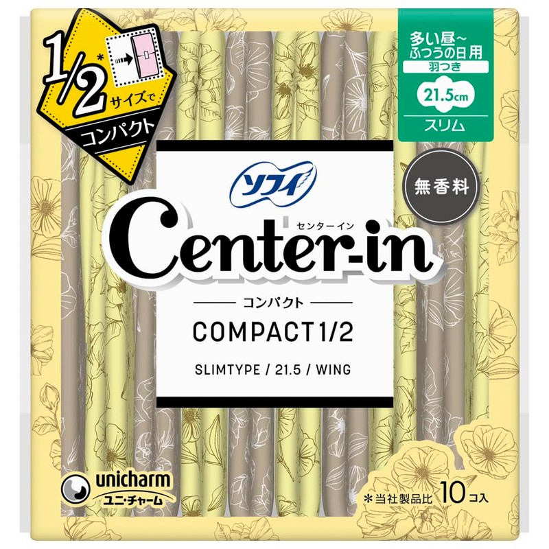 Center-in Unscented, Slim, Regular Daily Use, With Wings, 8.3 inches (21 cm), Pack of 10