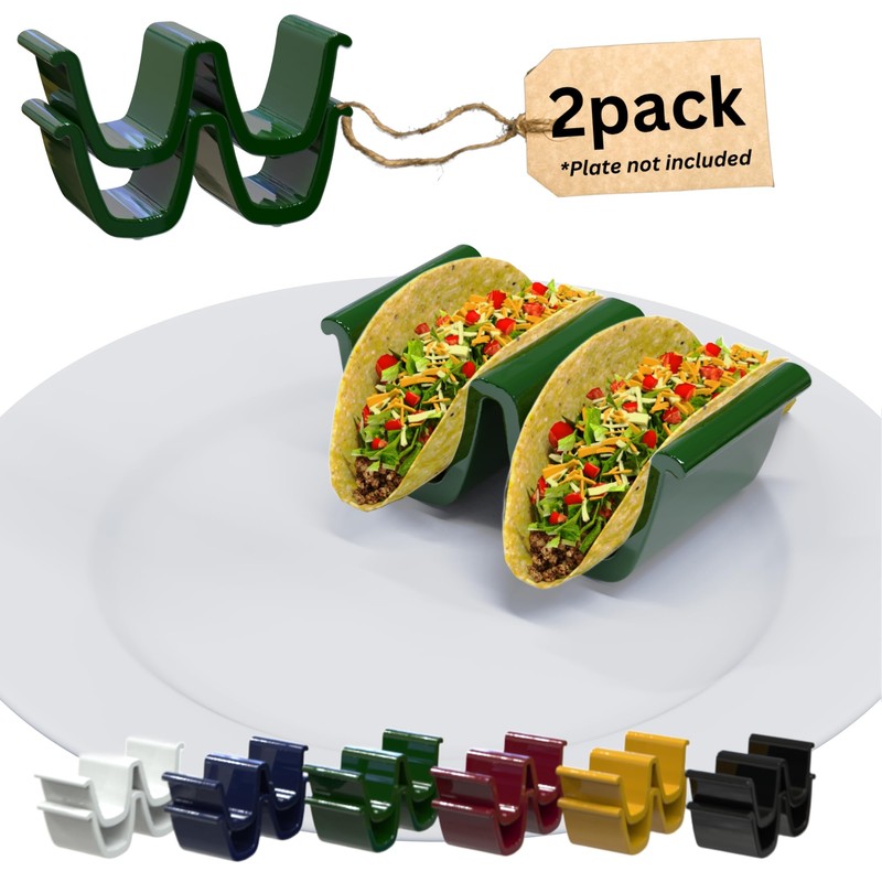 Ceramic Taco Holder (Green - 2 Pack, Taco Shells - 2 Slots)