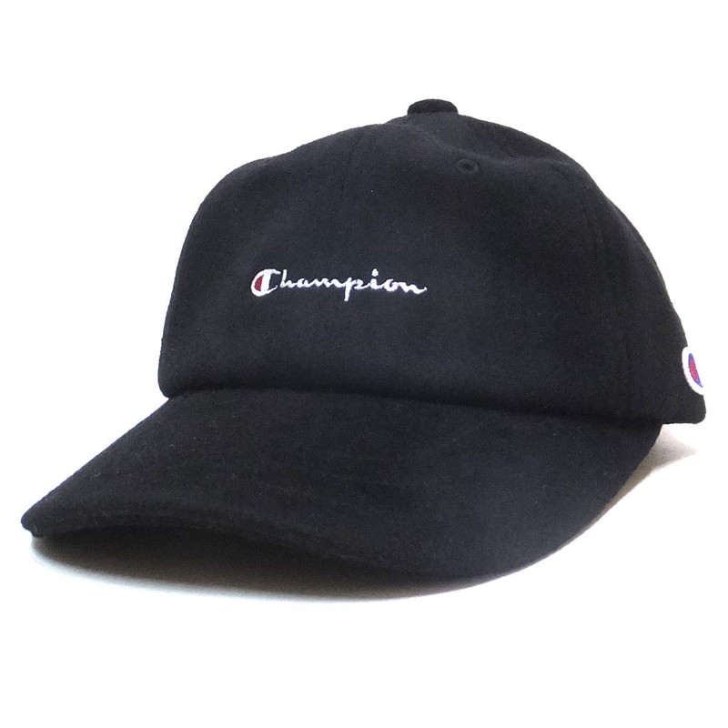 Champion Low Cap, Strapback, Wool Felt, Script Logo, Black