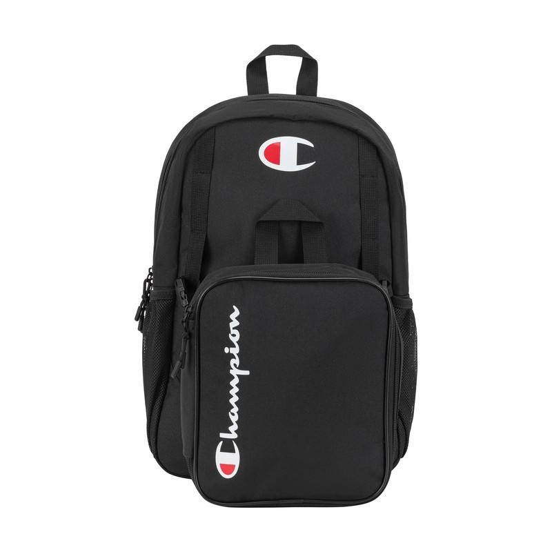 - STYLING: The Champion Mode Lunch Box Combo Youth Backpack boasts a sporty design, highlighted by a high-density print Champion logo. Its modern silhouette makes it the perfect accessory for young ones looking to make a statement wherever they go.