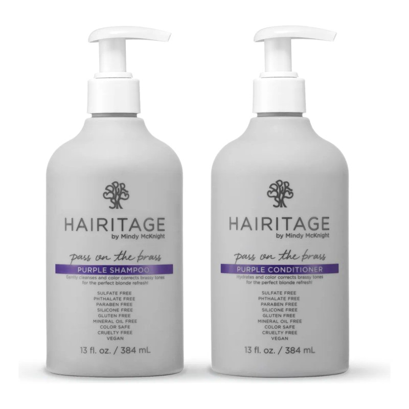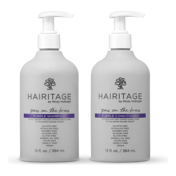 ✨💜 Champú y Acondicionador Hairitage Pass On The Brass Purple es la dupla perfecta para neutralizar los tonos amarillos y dorados no deseados en cabellos rubios, canosos o con mechas. ❄️ Su fórmula enriquecida con pigmentos violetas hidrata y protege el cabello, devolviéndole un tono frío, brillante y vibrante. 💧 Además, ayuda a controlar el frizz y deja el cabello suave, manejable y lleno de vida. ¡Luce un cabello radiante con un color fresco y sin amarillentos! 🌈💫