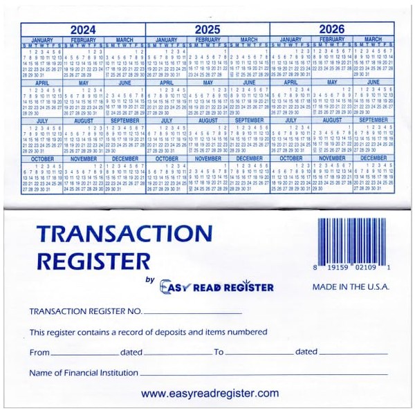 - Easy Read Register Checkbook Transaction Registers: Balance your check account withdrawals with this checkbook register featuring 16 lines per pages. This thicker body paper is small enough to carry in your pocket or wallet. Column headings are bold easy to read.