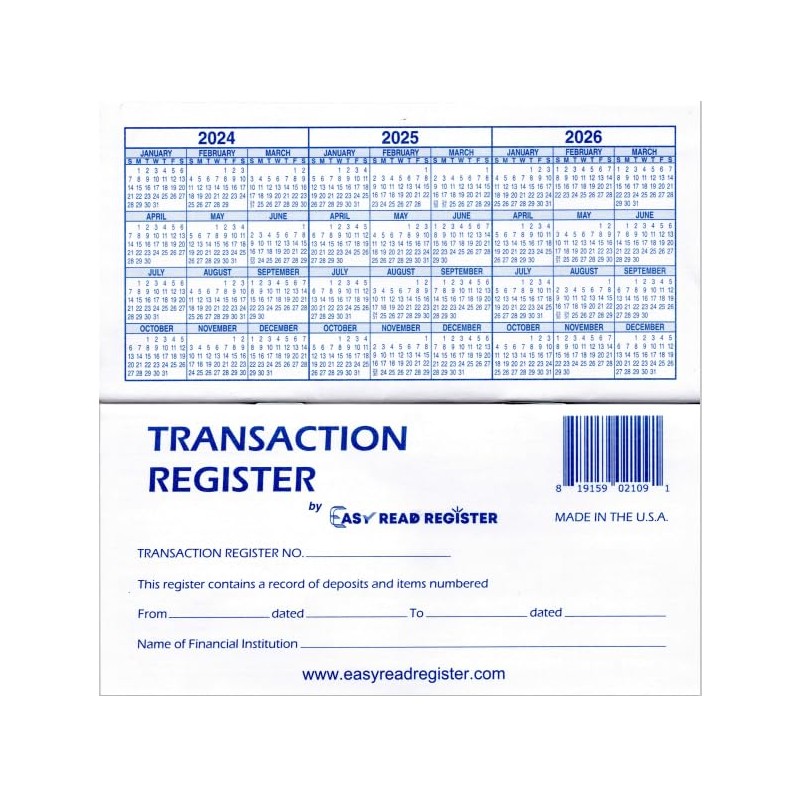 - Calendars on Back: Check register has up-to date calendars printed on the back.