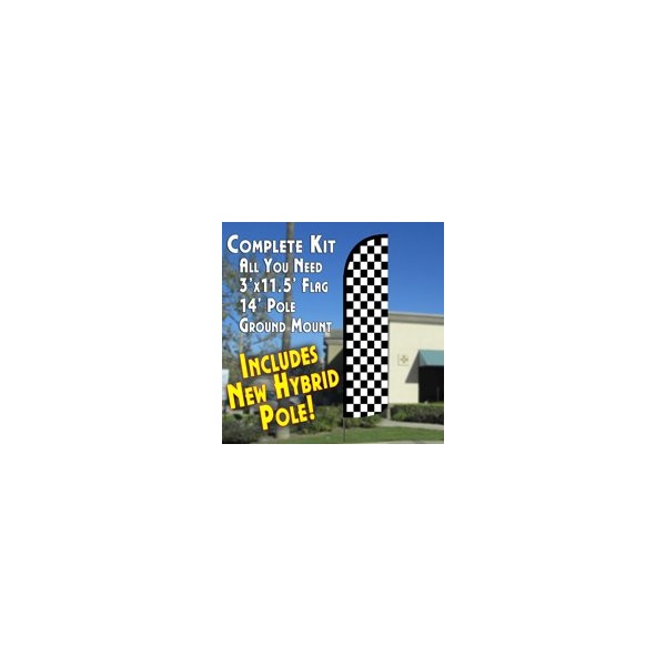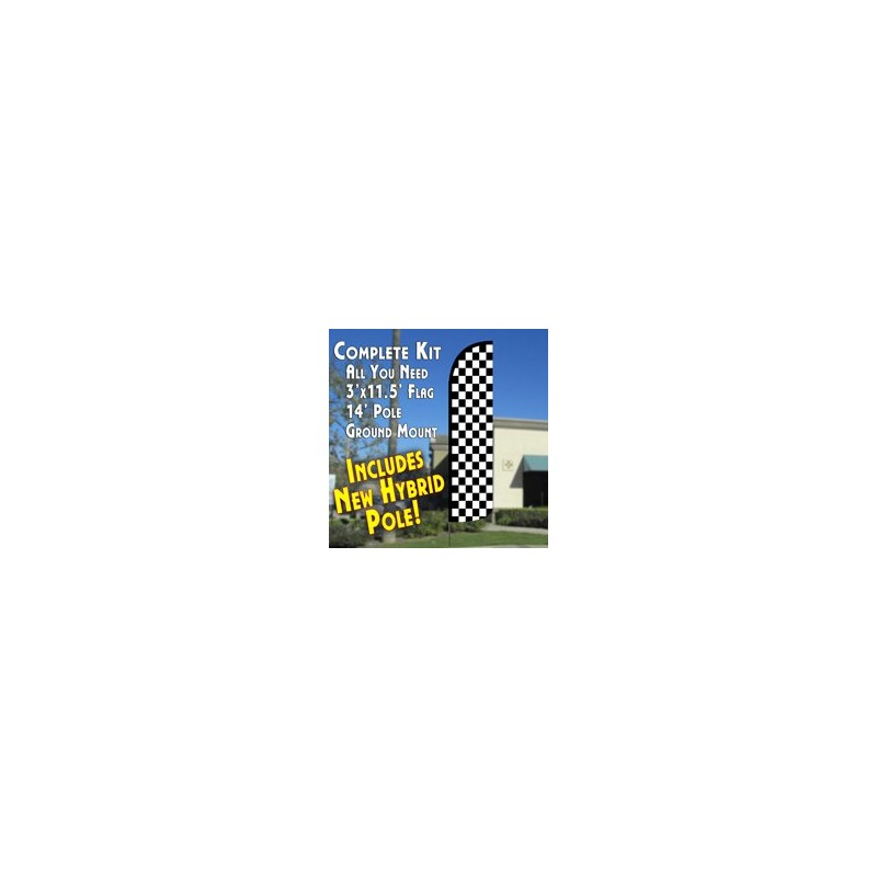 Checkered Black & White Windless Feather Banner Flag Kit (Flag, Pole, & Ground Mt)