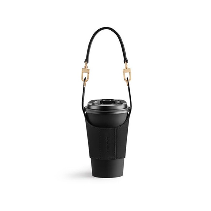 CHENGZI Coffee Cup Tea Cup Protective Sleeve Water Bottle Holder PU Leather Pouch (Black)