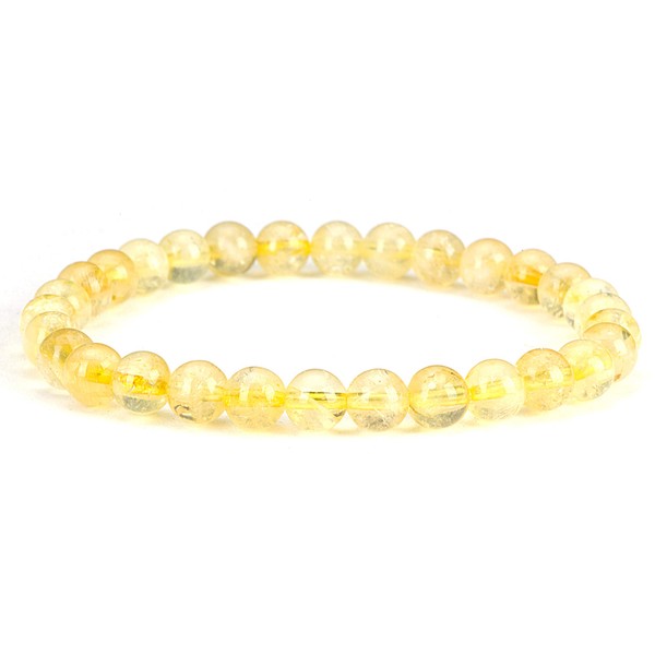 Cherry Tree Collection Gemstone Beaded Stretch Bracelet 6mm Round Beads | Small - 6" (Citrine)