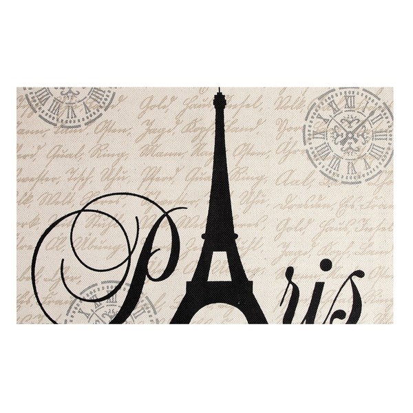 Romantic and inspirational, this printed type area rug will add a touch of Parisian flair to your living space. Featuring the words “Paris, ” and integrating the Eiffel tower, the beautiful details of this area rug are reminiscent of a vintage stamp or posh Champagne bottle. This vintage style rug is great on hardwood, tile or as a covering for your current carpet. Our Eiffel Tower vintage style rug brings a fashionable flair to any room. The neutral tones in this vintage style area rug will match a variety of décor. This area rug is hand-woven with 100% cotton and has a carpet backing. Best paired with a non-slip rug pad (not included). Available in 2 sizes.