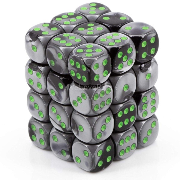 - Chessex Gemini 12 mm d6 Dice Blocks with Pips Dice Blocks (36 Dice) - Black-Grey with Green