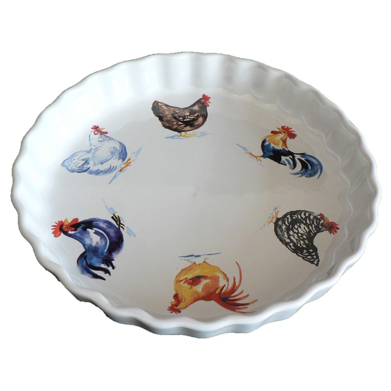 - Chicken pattern 25cm ceramic flan quiche dish