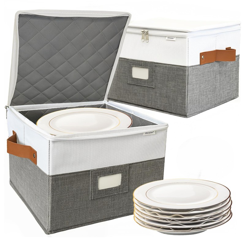 - Product List:Contains two dish storage boxes.Total 24 Felt Plate Dividers presented.It is 12''L*12''W*8''H.storasier-Make your storage easier! Our brand is committed to providing the best storage solutions for consumers. We hope to make the most perfect products with excellent design, high-quality materials and sincere heart, and serve our customers wholeheartedly!