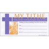 TITHE with crosses pew envelopes. Freely you have received, freely give. Matthew 10:8 (NIV) Name (blank line), Address (blank line), Amount (blank line). 2 colors Gold and purple offering envelopes, 3 1/8 x 6 1/4". Weekly offering, special tithe message. Package of 200.